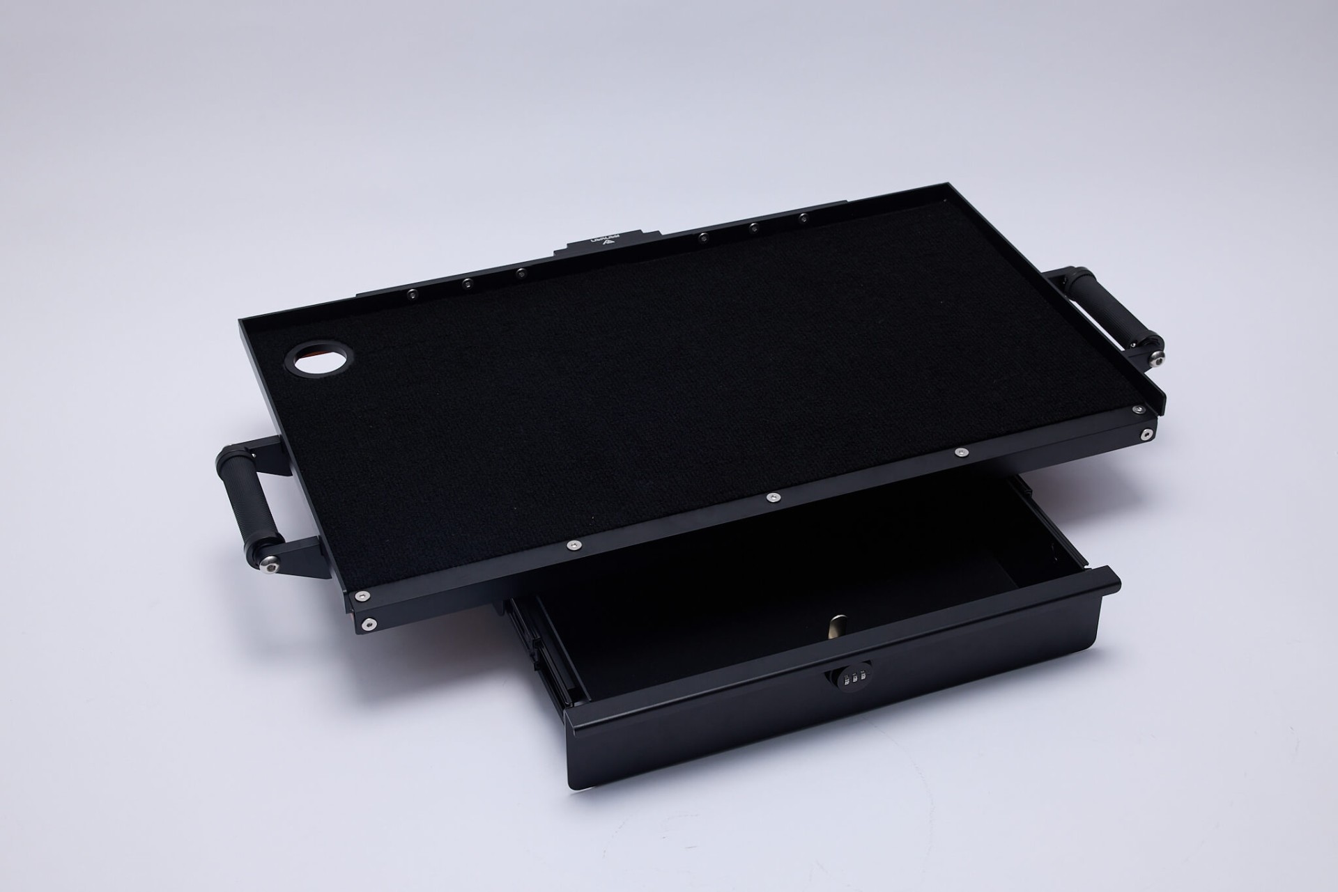 Mobile Work Platform is a modular accessory that expands the functionality of the Moving tripod Stand by providing a 3.08 sq. ft. customizable work surface.